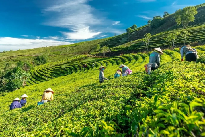 Đồi chè xanh mướt, nơi được mệnh danh ""tấm thảm xanh khổng lồ"" (Ảnh: Sưu tầm)