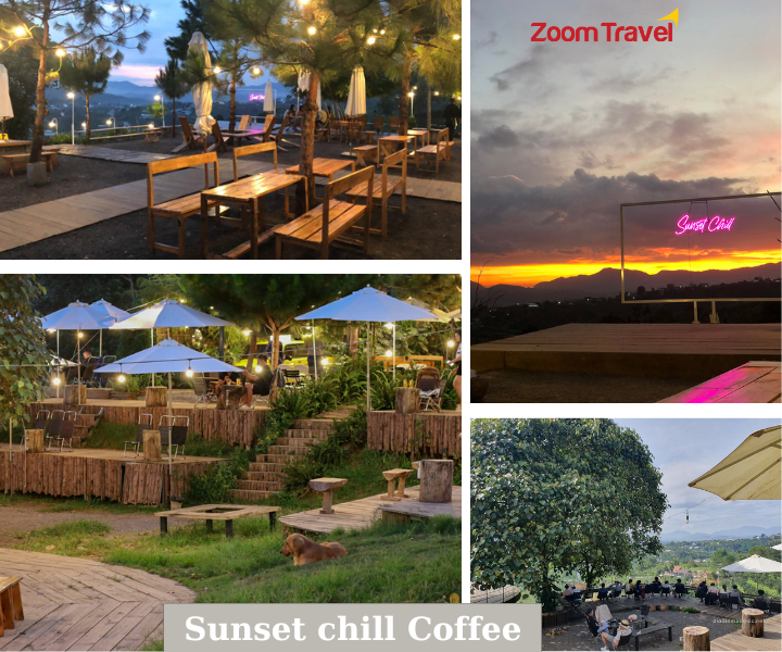 16h00: Xe và đưa đoàn đến cafe Sunset Chill Coffee. Quý khách sẽ được hít thở không khí trong lành của đồi núi và ngắm nhìn phong cảnh thiên nhiên rộng lớn của miền đất này. Tại đây còn có rất nhiều góc checkin vô cùng chất lượng làm lưu luyến du khách ghé thăm và đặt biệt nhất là ngắm hoàng hôn cực đẹp tại đây (Chi phí nước uống tự túc).