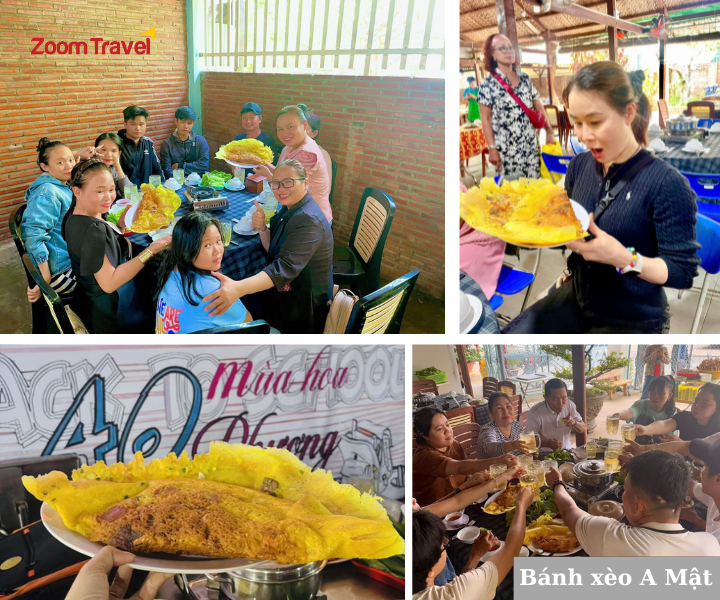 11h30: Đoàn dừng chân dùng buổi trưa tại Bánh Xèo A Mật, quý khách được thưởng thức đặc sản món bánh xèo giòn rụm chứ danh tại đây.