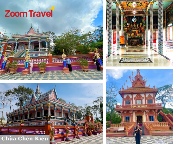 14h00: Tham quan Chùa Chén Kiểu Sóc Trăng: Ngôi chùa được xây dựng theo lối kiến trúc Phật giáo Nam tông Khmer rất độc đáo bởi các mảnh ghép của các mảnh sành, mảnh xứ