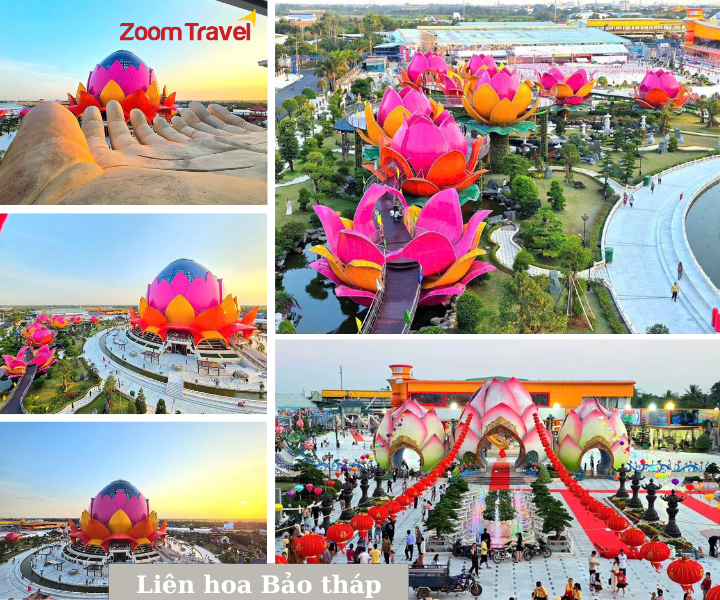 16h00: Đoàn dừng chân tại vua bánh Pía Sóc Trăng Tân Huê Viên, tại đây quý khách tham quan và chụp ảnh Liên Hoa Bảo Tháp với kiến trúc hình hoa sen độc đáo, bảo tháp có 3 tầng với chiều cao khoảng 68m, đường kính 99m. Bên trong cho đặt tượng Dược sư nặng 19 tấn, chiều cao 6,8m.