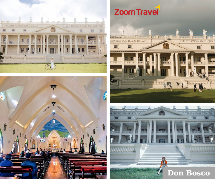 08h30: Xe đưa Đoàn đến nhà thờ Don Bosco thu hút mọi người với lối kiến trúc đậm nét phương Tây sang trọng, hiện đại, lấy cảm hứng từ những ngôi đền trong thần thoại Hy Lạp với cột trụ khổng lồ cùng tông màu trắng tinh khôi. (Trường hợp nhà Mục đóng cửa sẽ chuyển sang tham quan nhà thờ Domain De Mari).