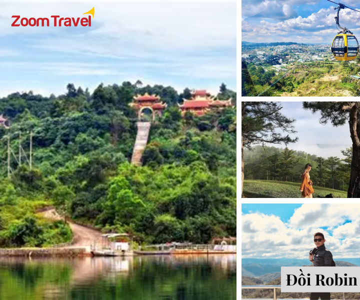 18h30: Đoàn di chuyển đến Đồi Robin, từ đây quý khách có thể ngắm nhìn toàn cảnh thành phố Đà Lạt trong mờ sương đến khi thành phố lên đèn, ngắm nhìn rừng thông chìm dần trong màn đêm với vẻ kì bí vốn của của nó, và đắm chim trong cảnh sắc thiên nhiên hùng vĩ nơi phố núi.