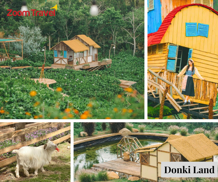 07h30: Xe và HDV đưa đoàn đến Donki Land - được lấy cảm hứng từ phong cách Trung Cổ Châu Âu nên tất cả các tiểu cảnh và cách bày trí tại đây sẽ mang đến cho bạn phong cảnh làng quê Châu Âu yên bình, xinh đẹp. Từ cối xay gió, mái nhà nhọn, cánh đồng hoa đủ sắc màu đến hồ nước thơ mộng và các nông trại nuôi đà điểu, nuôi vịt độc đáo. Ngoài ra quý khách được tặng một phần nước khi đến đây. Đặc biệt, Donki Land còn có các hoạt động vui chơi hấp dẫn như: