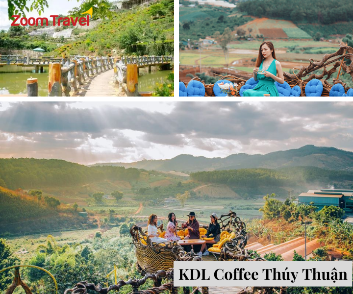 09h30: Tham quan KDL Coffee Thúy Thuận - được hình thành và mở rộng trên nền đất rộng gần 4ha. Với sự ưu đãi tự nhiên từ đất trời, thừa hưởng nét đẹp từ mây đại ngàn, thác và sông mênh mông. Là nơi lý tưởng để chụp ảnh và ngắm cảnh. Sáng sớm có thể săn mây, chiều tà đón ánh hoàng hôn hùng vĩ lặn sau núi. Bên cạnh đó, Du Lịch coffee Thúy Thuận Đà Lạt còn vô số góc lạ, đẹp để chụp ảnh check in. Trong khu Du Lịch Thúy Thuận còn có Xưởng sản xuất cafe lớn nhất Đông Nam Á, xuất khẩu cà phê đến các nước lớn trên thế giới, và là đối tác của các hãng cà phê lớn như Starbucks.