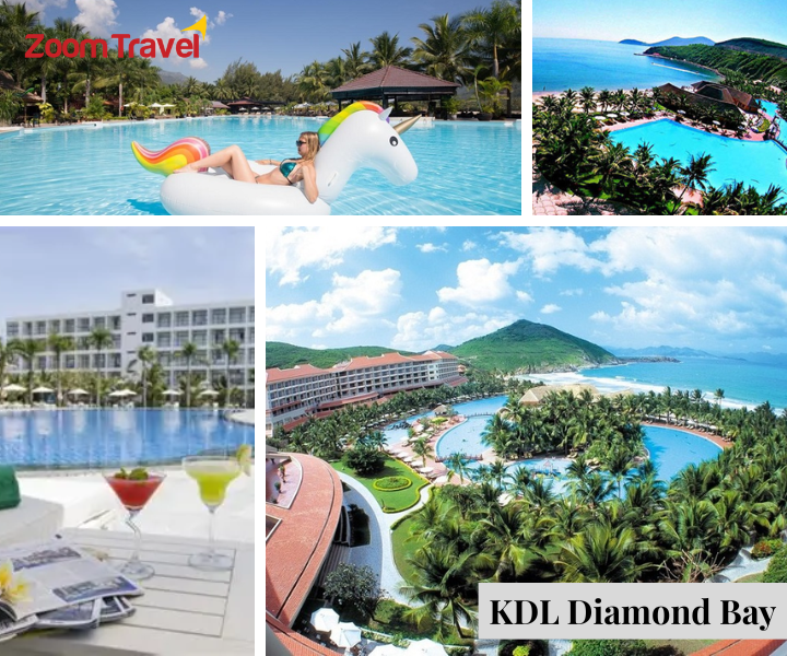 06h00: Đến Nha Trang đoàn di chuyển tham quan KDL Diamond Bay, nơi đây sở hữu bãi biển đẹp nhất tại Nha Trang và cũng là nơi từng diễn ra hoa hậu Hoàn Vũ 2015. Quý khách vệ sinh cá nhân, dùng điểm tâm sáng sau đó di chuyển đến bãi biển Nhũ Tiên nhận ghế, dù sau đó tự do tắm biển, nghỉ ngơi. Với làn nước xanh trong có thể nhìn tới đáy, bờ cát trắng mịn trải dài ra biển, phía trên là cồn cát với những hàng dừa cao vút đang đung đưa trước gió mọi thứ như hòa quyện lại với nhau tạo nên bức tranh thiên nhiên vô cùng tươi đẹp.
