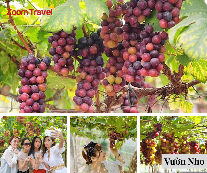 10h00: Quý khách dừng chân tại Ninh Thuận tham quan vườn nho, quý khách được thưởng thức rượu nho và mật nho miễn phí.