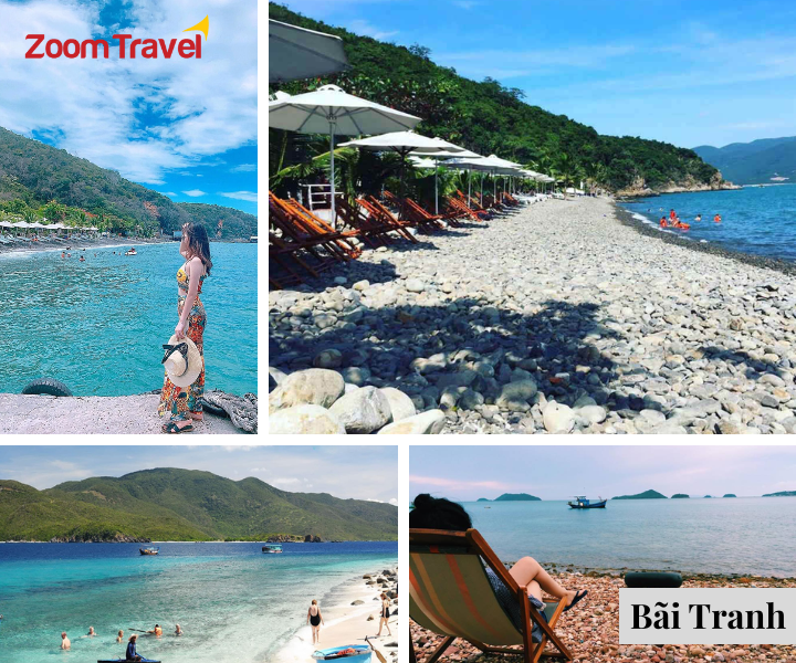 08h00: Xe và HDV đón Quý khách tại khách sạn bắt đầu di chuyển đến bến Cảng Vĩnh Trường. Sau đó, Quý khách lên tàu canno cao tốc, bắt đầu khởi hành cho điểm đến đảo đầu tiên – Đảo Bãi Tranh. Nơi đây được xem là thiên đường của những bãi biển tại thành phố biển Nha Trang, đến đây Quý khách có thể tự do tắm biển hay nằm trên ghế nghỉ ngơi nhìn ngắm toàn cảnh Vịnh Nha Trang xinh đẹp (có trang bị ghế dù). Ngoài ra, quý khách cũng có thể trải nghiệm 2 hoạt động nổi bật nhất tại Bãi Tranh là lặn ngắm san hô và chơi đùa cùng với cá bằng bình oxy hoặc đi bộ ngắm san hô bằng mũ phi hành gia. (Quý khách tự túc trải nghiệm).