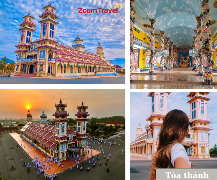 13h30: Tiếp tục chương trình xe đưa quý khách tham quan “Tòa Thánh Cao Đài” được xem là thánh địa của đạo Cao Đài, một quần thể kiến trúc độc đáo, để tìm hiểu về Đạo Cao Đài, một tôn giáo có xuất xứ tại Việt Nam. Tùy theo thời gian mà quý khách có thể lên lầu và tham dự lễ cúng tứ thời.